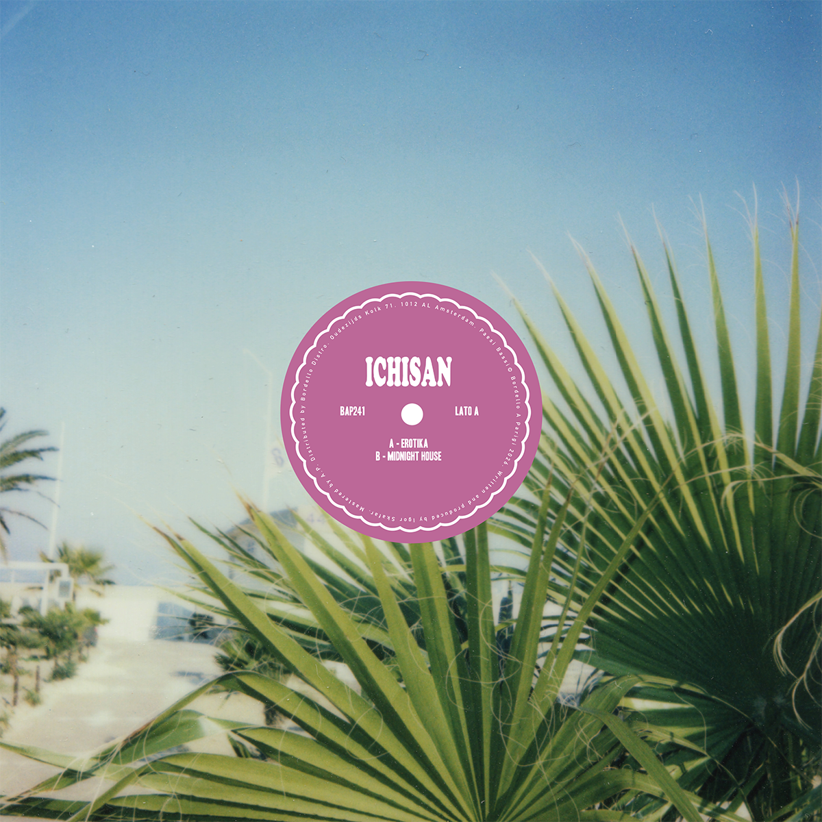 For almost two decades, Igor Škafar has honed a own unique sound. Warm and nostalgic, the Slovenian artist melts unctuous analogue tones with subtle percussive patterns. This palette is at the heart of Ichisan’s fifth appearance on Bordello A Parigi. An undulating and understated introduction ushers in “Erotika,” the cosmic gazing sounds of the 1970s and the turquoise waters of Balearic flowing as one. Swirling space synthlines are countered by punchy beats, fudgy basslines balanced by the gently rippling melody. The break offers new directions, drum patterns scatter before regrouping around those sunkissed scaling chords care of Škafar’s impeccable craftsmanship. The beats take on a disco snap for “Midnight House,” a smouldering snaking synthline unfurling itself to glorious heights. Bongos and toms support the sci-fi dipped keys of this seven-minute journey into the musical mind of Ichisan. Two tracks that offer a deep dive into the sounds of a truly singular artist.