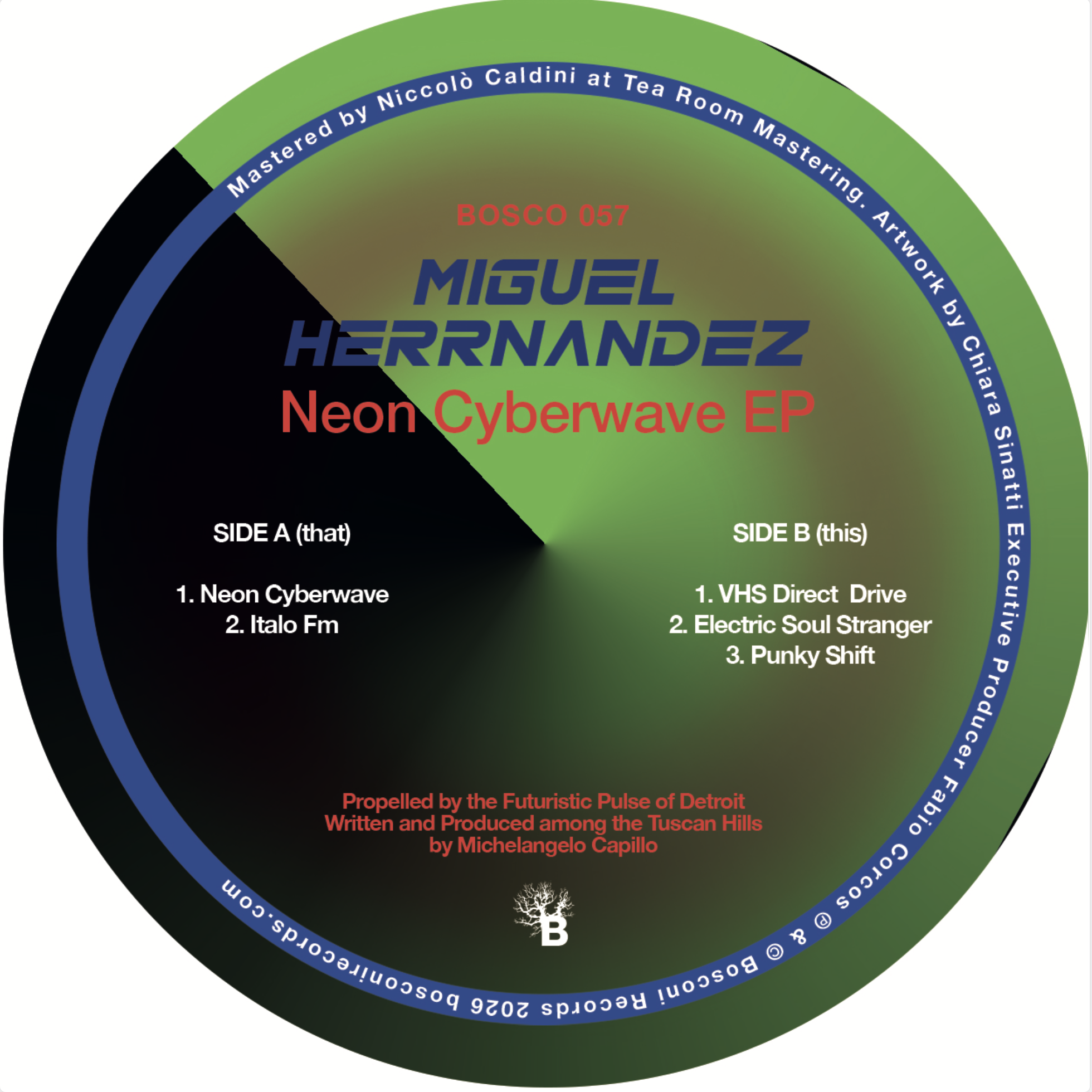 Bosconi Records proudly introduces Neon Cyberwave, the first solo EP on the label by Italian electronic visionary Miguel Herrnandez, marking a milestone in the evolution of an artist who has consistently bridged Detroit-rooted aesthetics with the experimental pulse of the European underground.